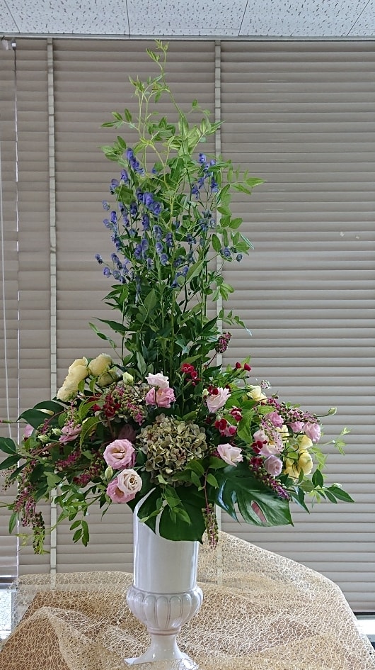 6月下旬にコロナでダメージを受けた生花、苗物の生産者の方々を助けようという国からの支援に賛同しボランティアで生徒さんたちと一緒に呉市役所ロビーにお花を飾りました。