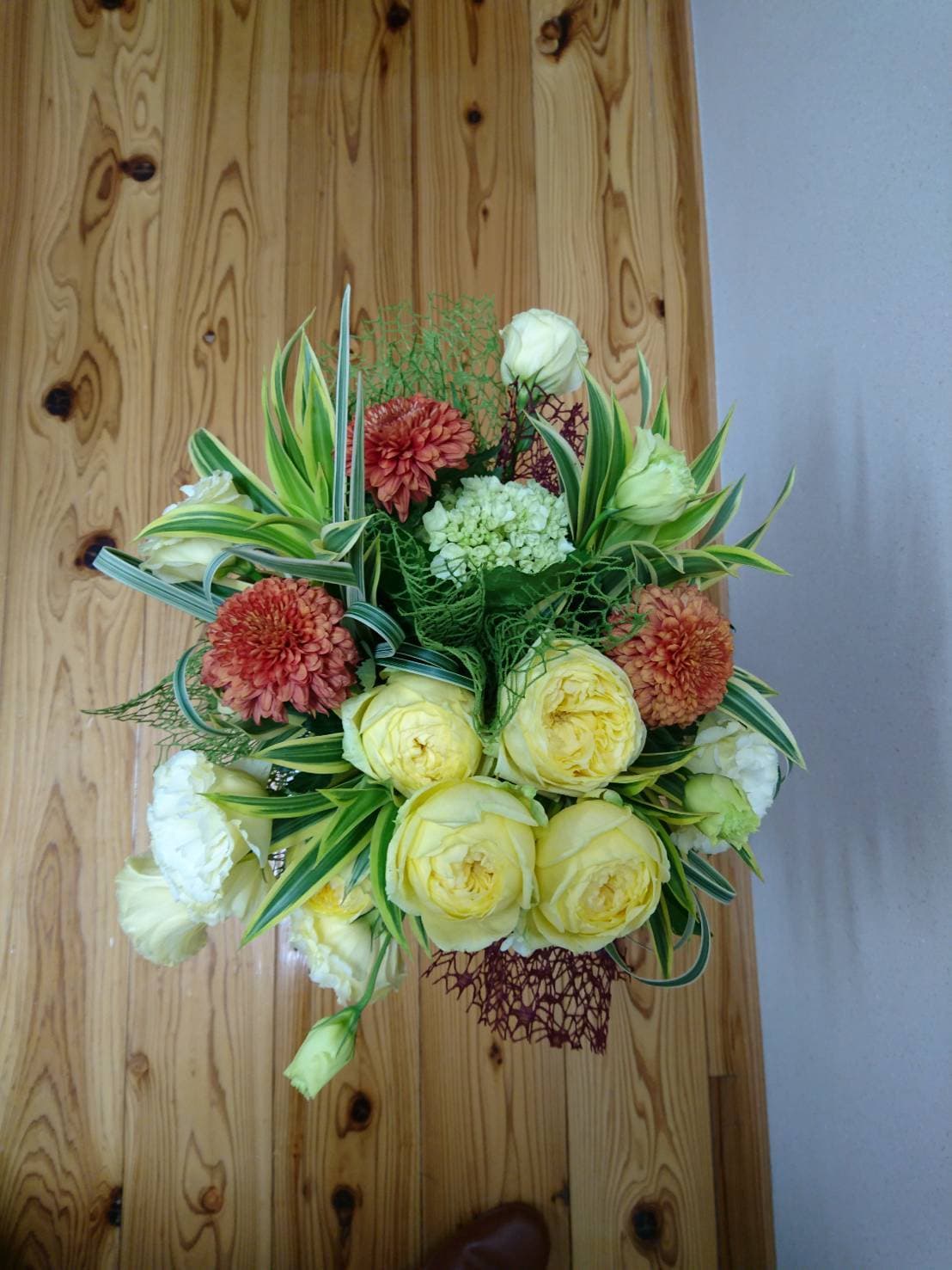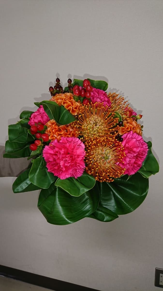 カトリック協会のお子様2人が空港で代表して花束を差し上げた時の花束の依頼がありまして制作しました。