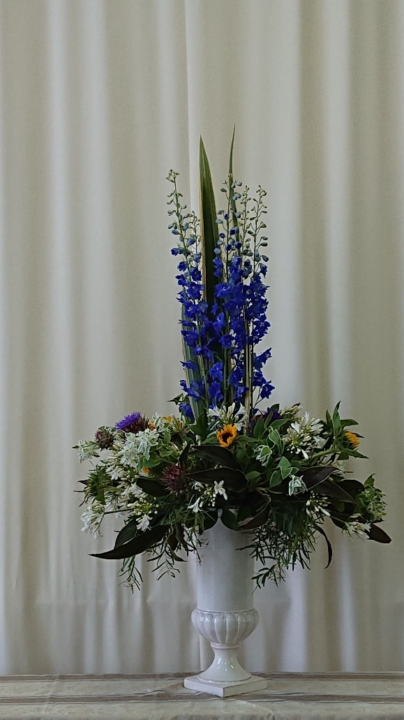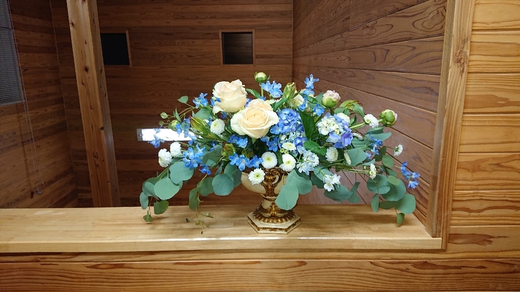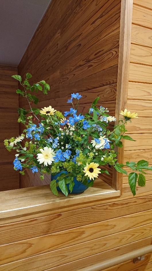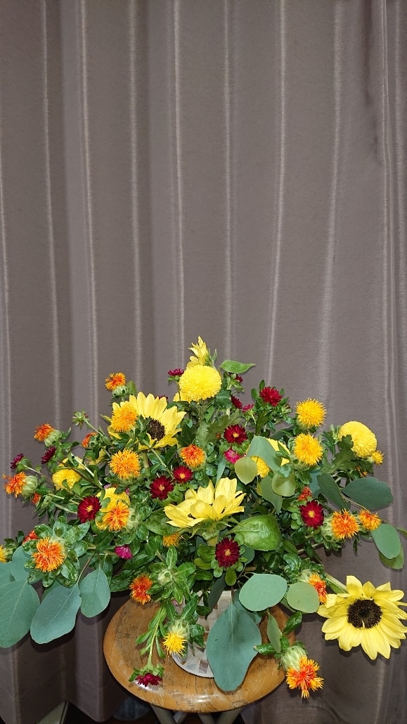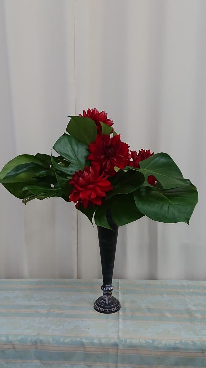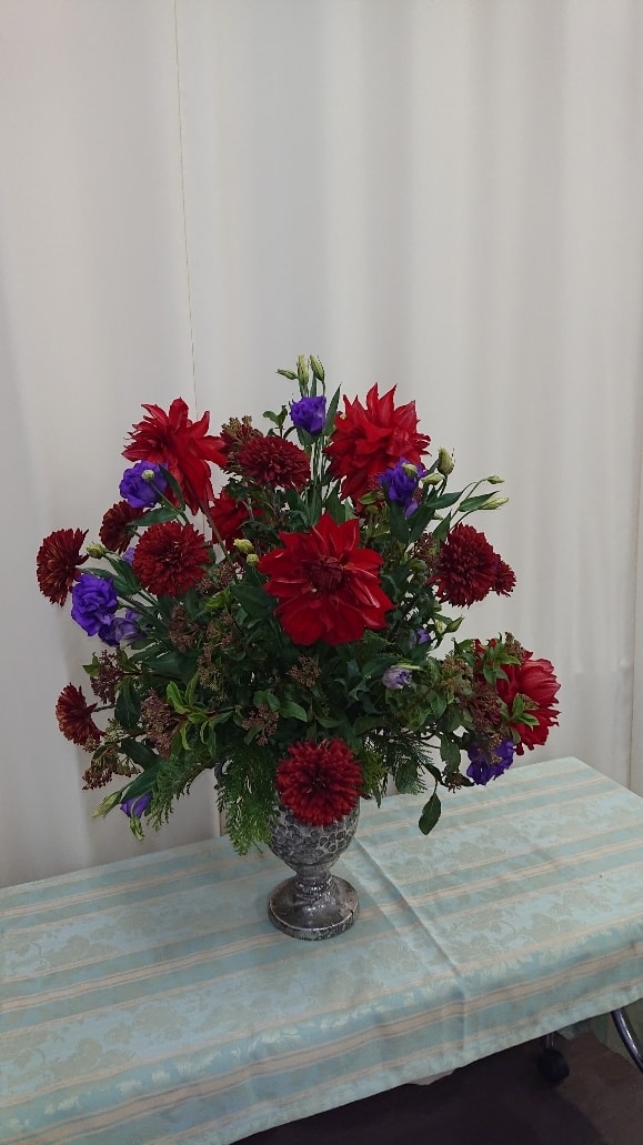 6月下旬にコロナでダメージを受けた生花、苗物の生産者の方々を助けようという国からの支援に賛同しボランティアで生徒さんたちと一緒に呉市役所ロビーにお花を飾りました。