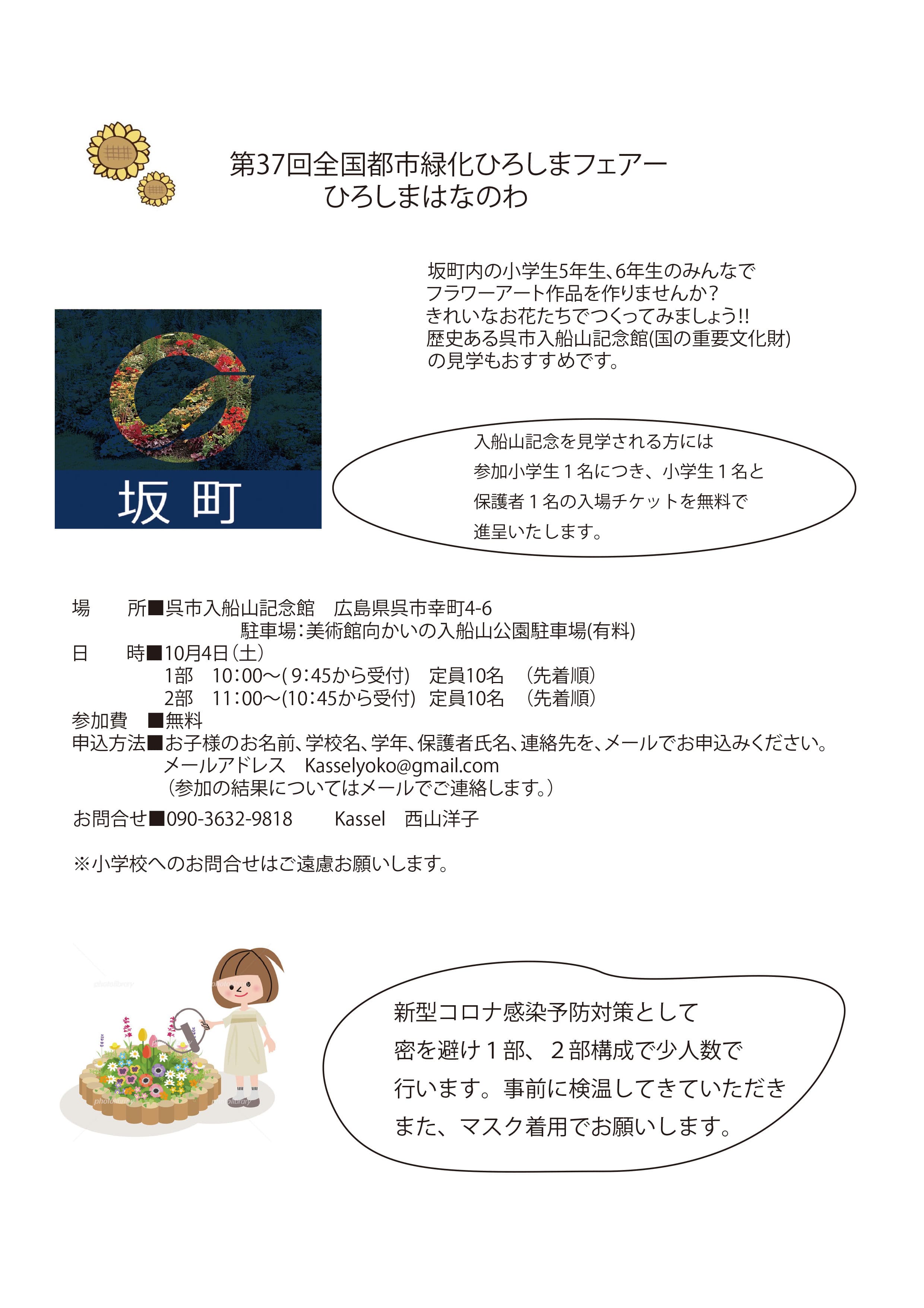 | 坂モダンスタイル教室 | 広島県安芸郡坂町平成が浜1丁目8-10 Map 木曜日 10時~ フラワーデザイン造形コース(1回):5000円 別途花代 フレンチコースレッスン料:3500円 別途花代 ◆2020年1月よりレッスンスタート |