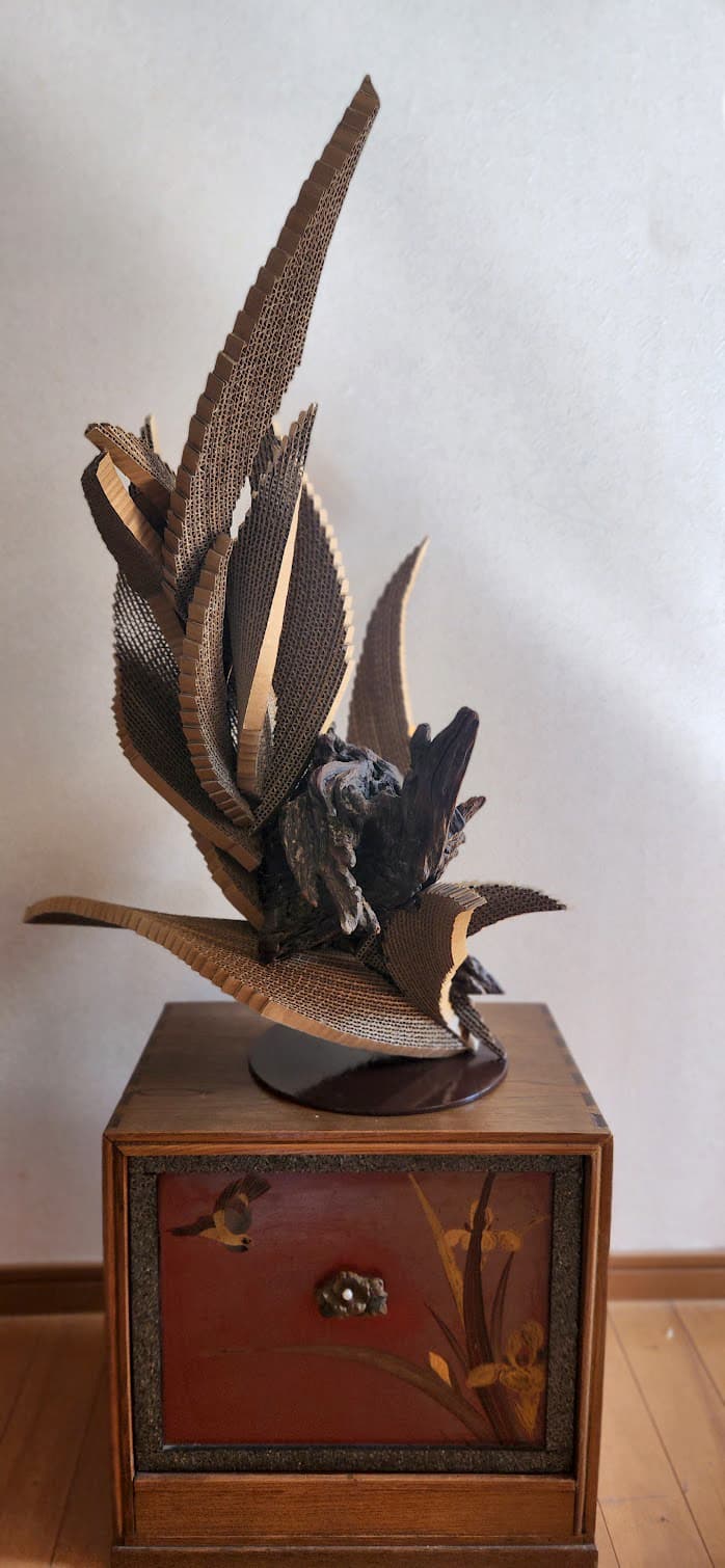 現在、廃棄される物(木の皮、段ボール)を使用し前より良いものに作り直す”アップサイクル”の作品を制作しております。